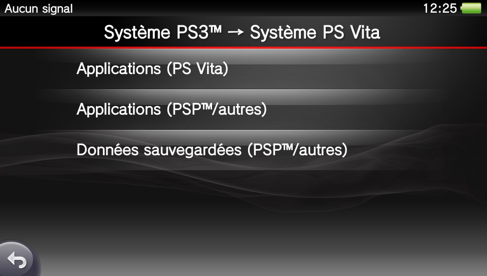 Il sert également à faire une copie de sauvegarde de votre console - ou à en restaurer une antérieure. L'ergonomie de l'ensemble s'avère tout à fait perfectible. Suivant le contenu qu'on souhaite transférer, et le sens vers lequel on veut le faire (du PC ou vers le PC), il faut lancer l'application de gestion des contenus sur la PS Vita lorsqu'elle est branchée, puis choisir le sens du transfert, puis choisir le type de contenu (Vidéo, Musique, etc.), ce qui va lancer l'application idoine sur la PS Vita. Ensuite on sélectionnera les contenus à transférer.