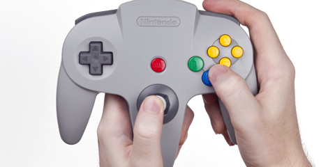 Mars 1997, la Nintendo 64 arrive enfin en Europe après avoir été maintes fois repoussée partout sur le globe et propose une manette elle aussi révolutionnaire dans le petit monde des consoles de jeux. La manette Nintendo, avec sa forme en "M", son aspect de trident, est la première à proposer un stick analogique qui démontrera tout son potentiel en jeu, dans des environnements 3D, comme on pourra le constater avec le mètre étalon Super Mario 64. Avec sa prise en main particulière où la main empoigne la manette par son milieu et son bouton "Z" au dos qui vient se placer juste sous l'index gauche, la manette N64 est également excellente pour jouer aux FPS, et comme de base la console propose quatre ports manettes, ce qui n'est pas un standard à l'époque, les joueurs épuisent leur pad sur des parties multi de GoldenEye 007... Cependant, pour vibrer, la manette de la 64 bits nécessite qu'on y ajoute un Kit Vibration, le Rumble Pak.