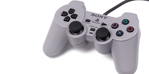 Si c'est en 1995 que sort la PlayStation en Europe, il faudra attendre le printemps 1998 pour voir la nouvelle manette à double stick mais surtout à vibrations, la DualShock, arriver en Europe. Sortie en 1997 au Japon, cette manette succède au modèle standard du pad PlayStation (créé par Teiyu Goto et non Ken Kutaragi comme on le lit parfois), puis à celui à joysticks mais sans vibrations, des modèles que Shigeru Miyamoto considérera comme une évolution ratée de la manette SNES. Et en effet, le créateur de Mario et Zelda a de quoi être un peu échaudé, la manette PlayStation empruntant beaucoup à celle de la SNES. Cependant, la manette Sony saura imposer ses propres caractéristiques comme quatre gâchettes au lieu de deux, des vibrations de base, contrairement au pad de la N64 par exemple, qui s'il proposait bien un stick analogique, demandait l'ajout d'un Rumble Pak pour vibrer, et bien entendu, la manette PS impose au monde entier ses quatre formes géométriques, comme un nouveau logo en plus de celui de la PlayStation, le carré, le triangle, le rond et la croix.