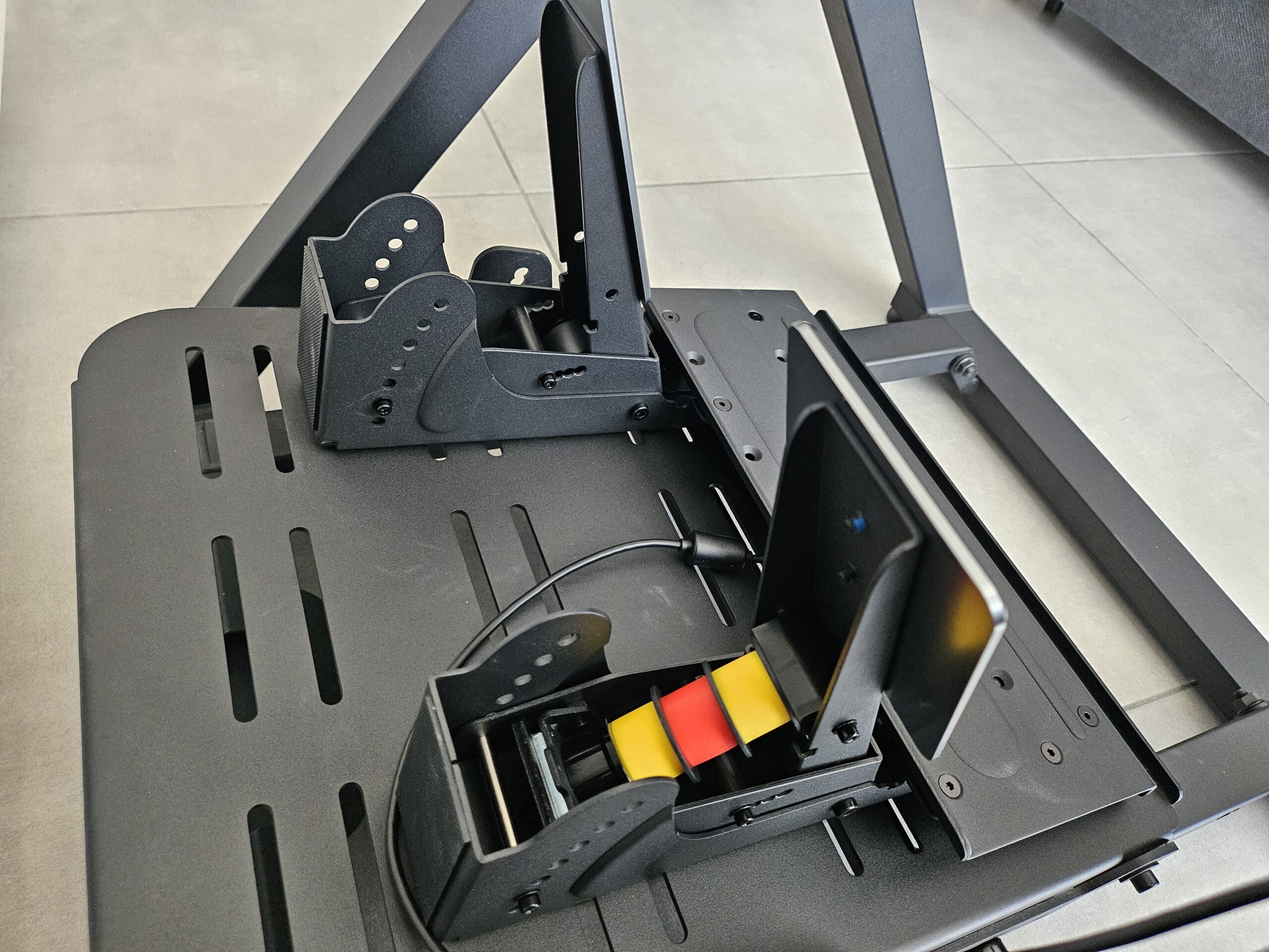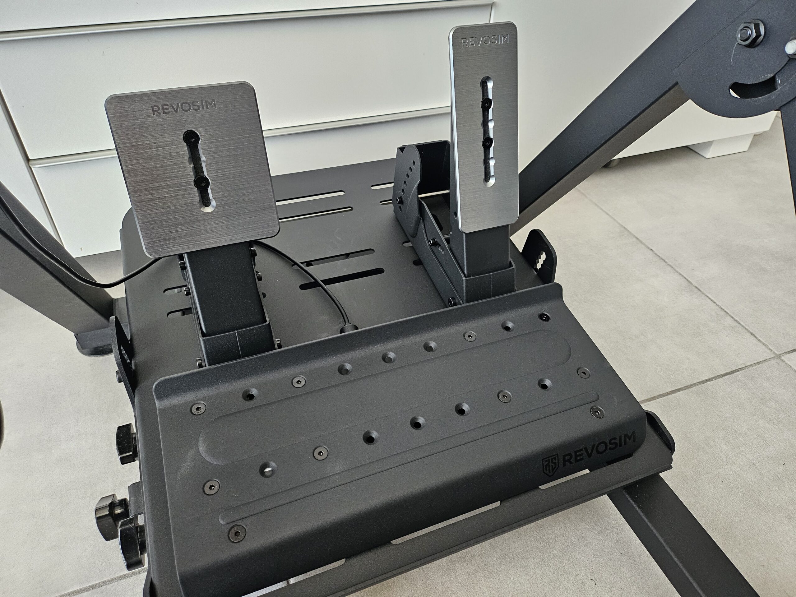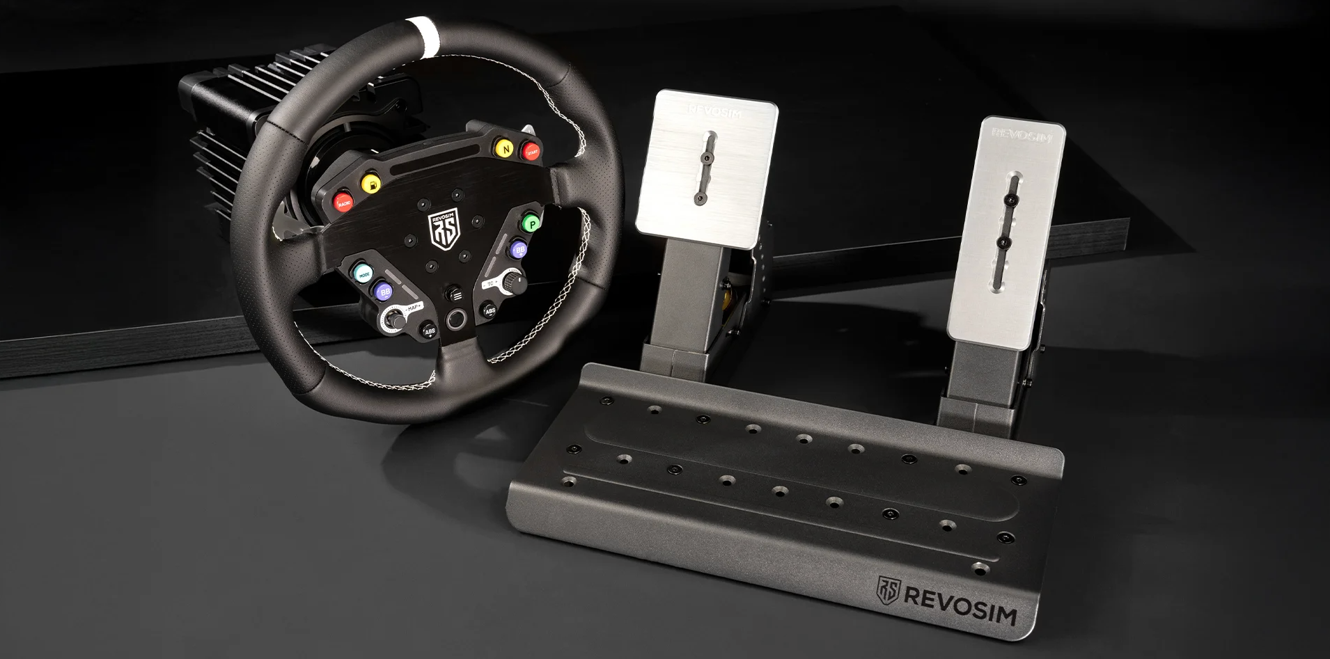 De prime abord, on pourrait croire qu’un pédalier n’a rien d’exceptionnel : deux pédales fixées sur une plaque métalique, emballez c’est pesé. Tout amateur de simracing vous le certifiera sans hésitation, un bon pédalier et surtout un excellent frein sont primordiaux dans la quête des performances en piste. Et sur ce point, Revosim n’a pas non plus lésiné sur la qualité. Avec sa conception entièrement en métal, le pédalier du RS Pure inspire confiance quant à sa longévité. Pas de jeu à signaler une fois l’ensemble fixé mais, surtout, un grand nombre de possibilités de réglages que l’on n’a pas l’habitude de retrouver dans cette gamme, combinés à un design pensé pour être pratique en toutes circonstances. Plaques de pédales réglables en hauteur, écartement entre le frein et l’accélérateur personnalisable, angle d’inclinaison ajustable de 60 à 90 degrés, capteur à effet hall pour l’accélérateur et cellule de charge de 100 kg pour le frein (load cell)... n’en jetez plus. Les mouvements sont précis et le ressenti du frein se montre particulièrement agréable en plus d’être personnalisable selon vos préférences. Le set est accompagné d’élastomères de différentes densités permettant d’obtenir le “toucher” que vous affectionnez, de souple à rigide. Le pédalier sait s’adapter à tous les styles et même techniques de pilotage, de la F1 au rallye. Il est à noter que l’ajout d’une pédale d’embrayage optionnelle sera bientôt possible, Revosim travaillant sur le développement de son ecosystème, là aussi un indispensable (un shifter et un frein à main, inspirés de Simagic, sont dans les cartons).