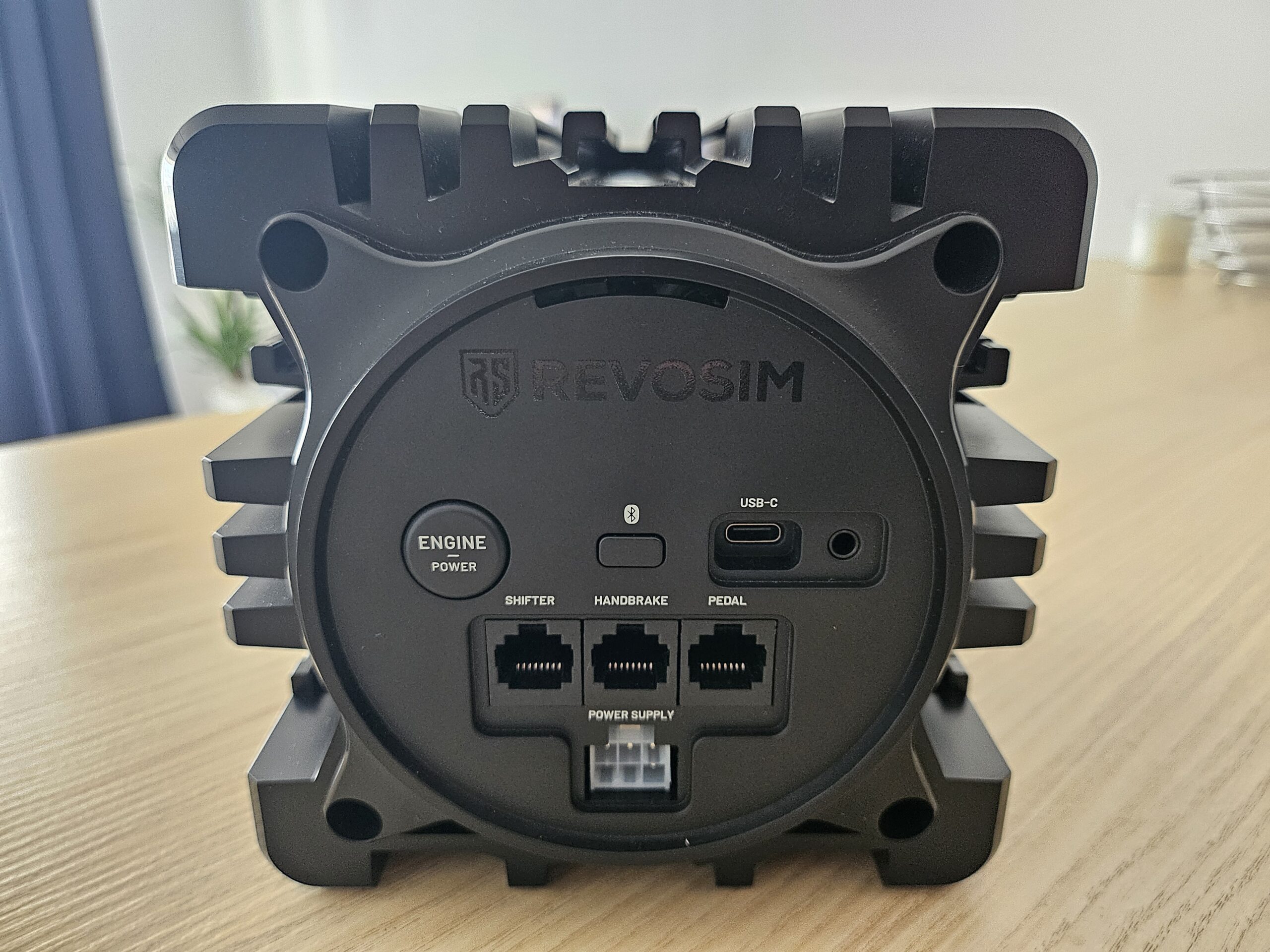 Pas de surprise niveau design de la base, nous sommes face à un type de conception ayant déjà fait ses preuves, avec un boîtier en aluminium arborant des évents façon radiateur, présents évidemment pour une dissipation optimale de la chaleur. Les faces avant et arrière de l’ensemble sont fermées par deux couvercles en plastique robuste et qualitatif, bien que l’assemblage laisse apparaître de petits écarts de finition sans gravité. Pour assurer la liaison entre le moteur et le volant, Revosim a opté pour l’utilisation d’un Quick Release de type NRG en aluminium, ce qui se fait de mieux dans le domaine puisque repris directement de la véritable course automobile. Gage de robustesse et de fiabilité en toute simplicité, ce système de fixation permet de changer de roue à la volée, tout en assurant une compatibilité avec de véritables volants (comme dans notre cas avec l’utilisation d’un volant conçu pour le drift). Dans une moindre mesure, cela permet aussi de connecter un périphérique de marque tiers comme Simagic ou Moza, mais sans réel intérêt pour le moment puisque sans prise en charge de l'électronique associée. La surface arrière de la base présente quant à elle les ports prévus pour la connectique, avec un USB-C pour la liaison à la source, une prise jack, et trois RJ 45 dédiés au branchement des périphériques de la marque (le pédalier, et les futurs freins à main et shifter sur lesquels nous reviendrons plus tard). Une prise d’alimentation complète le tout, aux côtés d’un bouton de mise sous tension et d’un bouton réservé à l’association Bluetooth avec votre téléphone portable en guise de dashboard. Un point de la plus grande importance est à noter : le RS Pure n’est pour l’instant compatible que sur PC… une faiblesse de taille et surtout un risque considérable pour une marque nouvelle, qui se voit ainsi confrontée à une concurrence impitoyable et surtout extrêmement bien implantée sur PC. Nacon a l’habitude de l’univers des consoles de salon et se doit de proposer rapidement une compatibilité PS5 et Xbox Series pour espérer survivre sur le long terme, à la manière justement d’un Fanatec. Les plus grosses parts de marché se trouvent là, et Revosim possède tous les arguments pour y réussir, à condition d’en saisir l’opportunité.