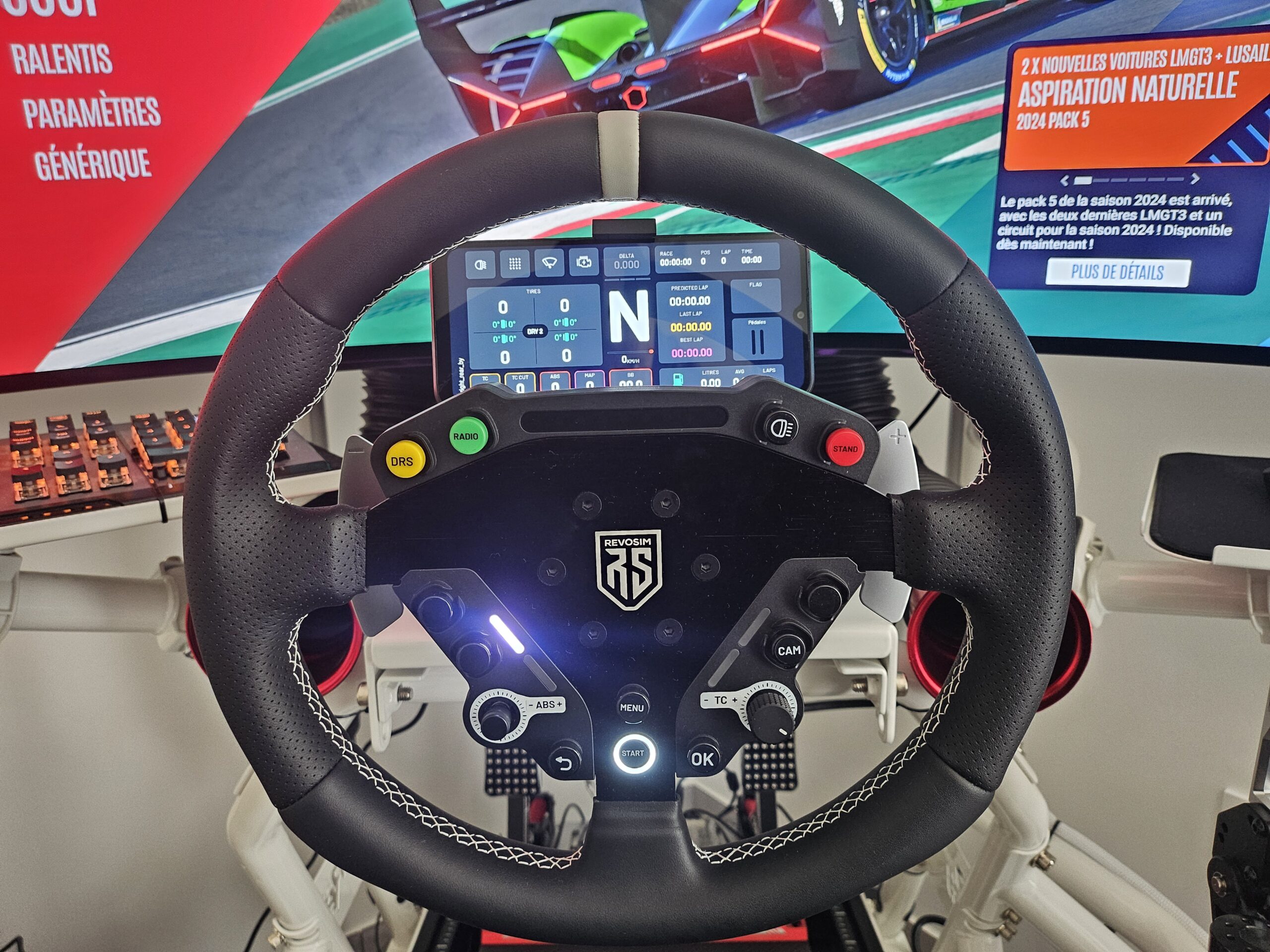 Côté technique, la base RS Pure propose un couple de 9Nm en pic (l’équivalent de sa “puissance”, notez bien les guillemets) combiné à un encodeur de 21 bits. Une capacité honorable pour ce segment et suffisante pour ressentir de nombreux détails sans saturation, à condition de ne pas pousser le couple à 100% de sa limite en permanence. Comprenez par là qu’utiliser 6Nm sera suffisant pour ne pas s’arracher les bras et garder un rendu réaliste (car oui, de nombreuses voitures de courses sont équipées d’une direction assistée…), tout en conservant de la ressource pour les informations soudaines tirant profit des 9Nm de pic de manière lisible. Procéder de la sorte possède un autre avantage, celui de ne pas provoquer de surchauffe du moteur, synonyme de baisse de puissance. Notre expérience, basée sur une sélection de jeux variés (Assetto Corsa, ACC et Evo, Le Mans Ultimate, EA WRC, F1 25 et Automobilista 2) s’est révélée plaisante, avec évidemment plus ou moins de qualité de retranscription propre à chacun des titres. Le RS Pure étant encore en cours d’intégration dans certains jeux, il nous à par moments fallu bidouiller pour que le l’intégralité du matériel soit reconnu et fonctionnel, mais rien que nous n’ayons pu surmonter. La base conçue par Revosim tient ses promesses et propose ce que nous sommes en droit d’attendre pour du matériel de cette gamme. Il faut désormais du temps à la marque pour optimiser efficacement le tout.
