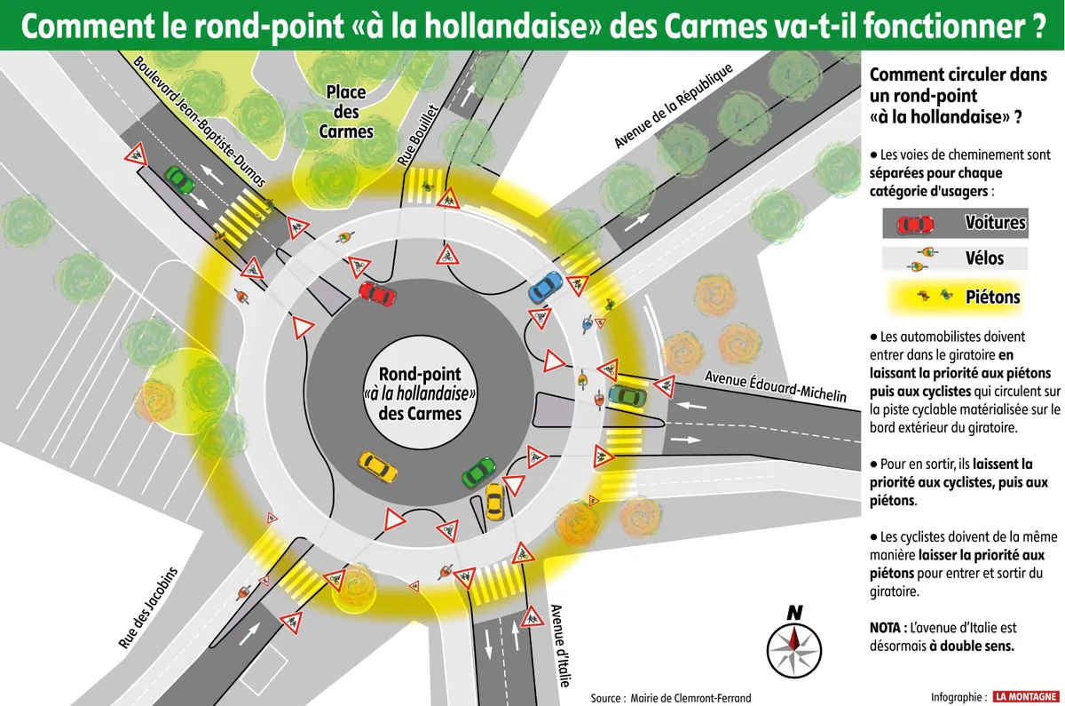 Le rond-point dit « à la hollandaise », importé des Pays-Bas, s'installe progressivement dans le paysage urbain français. Et s'il a fait ses preuves chez notre voisin européen, cela a également été le cas à Clermont-Ferrand, où une expérimentation menée s'est faite sans fracas. Et surtout sans accident.